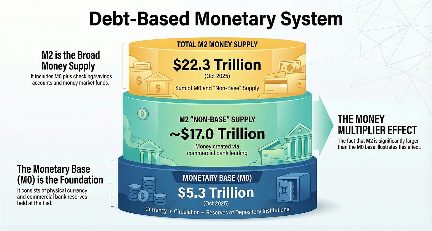 The “non-base” money supply is the real alchemy. This is money loaned into existence by commercial banks. But for banks to create money, they must at least maintain sufficient reserves with the central bank (the Federal Reserve).