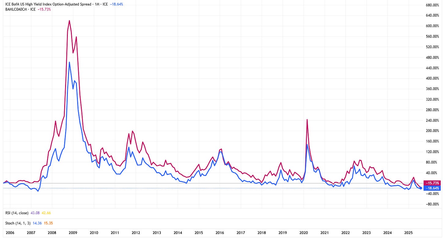 For bonds, the MOVE index is important to watch. The MOVE index is around 80 right now. Reading levels above 125 to 150 start to impact the markets negatively. The MOVE index spiked to around 150 in April of this year.