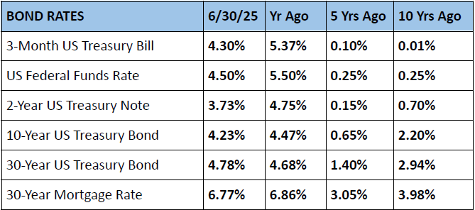 The second quarter of the year experienced significant volatility in many markets influenced by a confluence of economic, geopolitical, and macroeconomic factors. Many markets continue to press up against all-time highs, including US stocks, European equities, and other global stocks, as well as Bitcoin, gold, and the global liquidity and money supply. Before I review some market action, I’d like to touch on the passing of the budget bill in Congress.