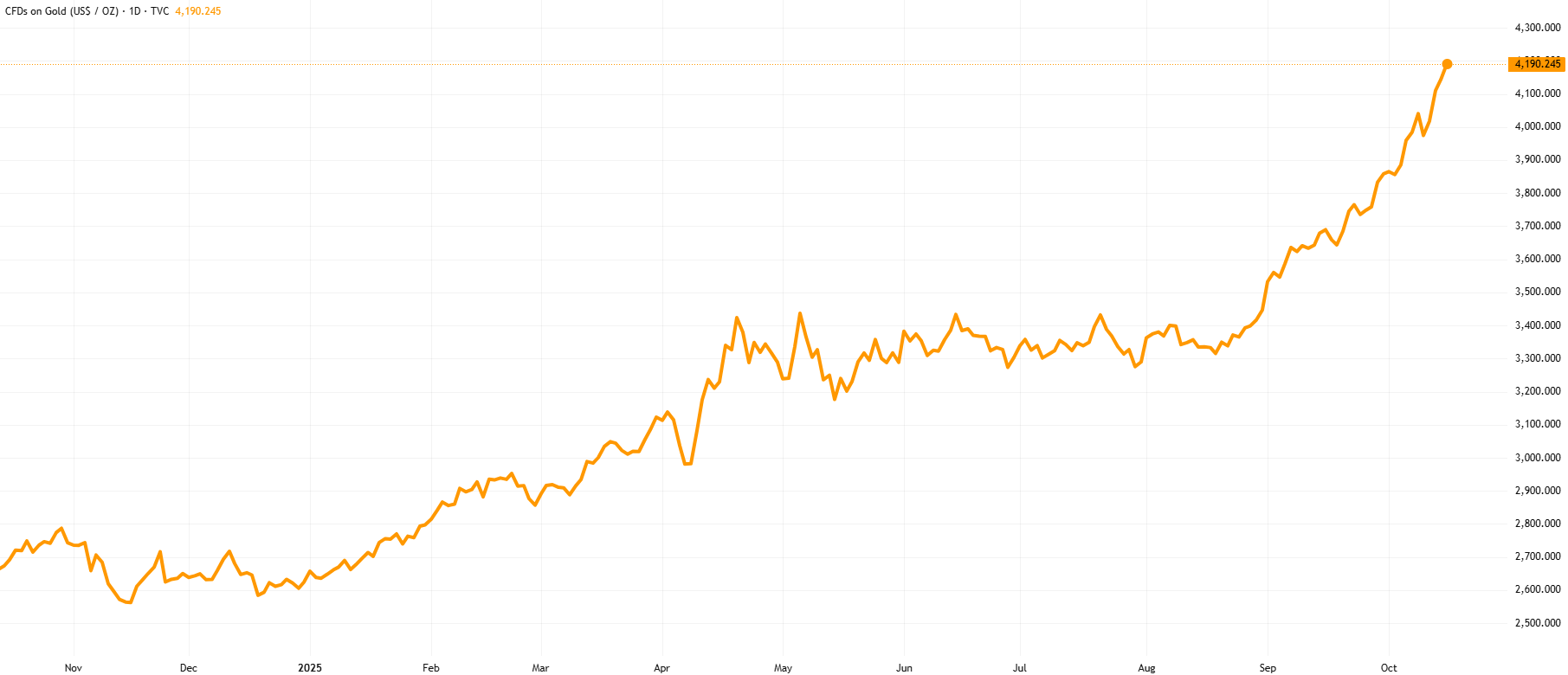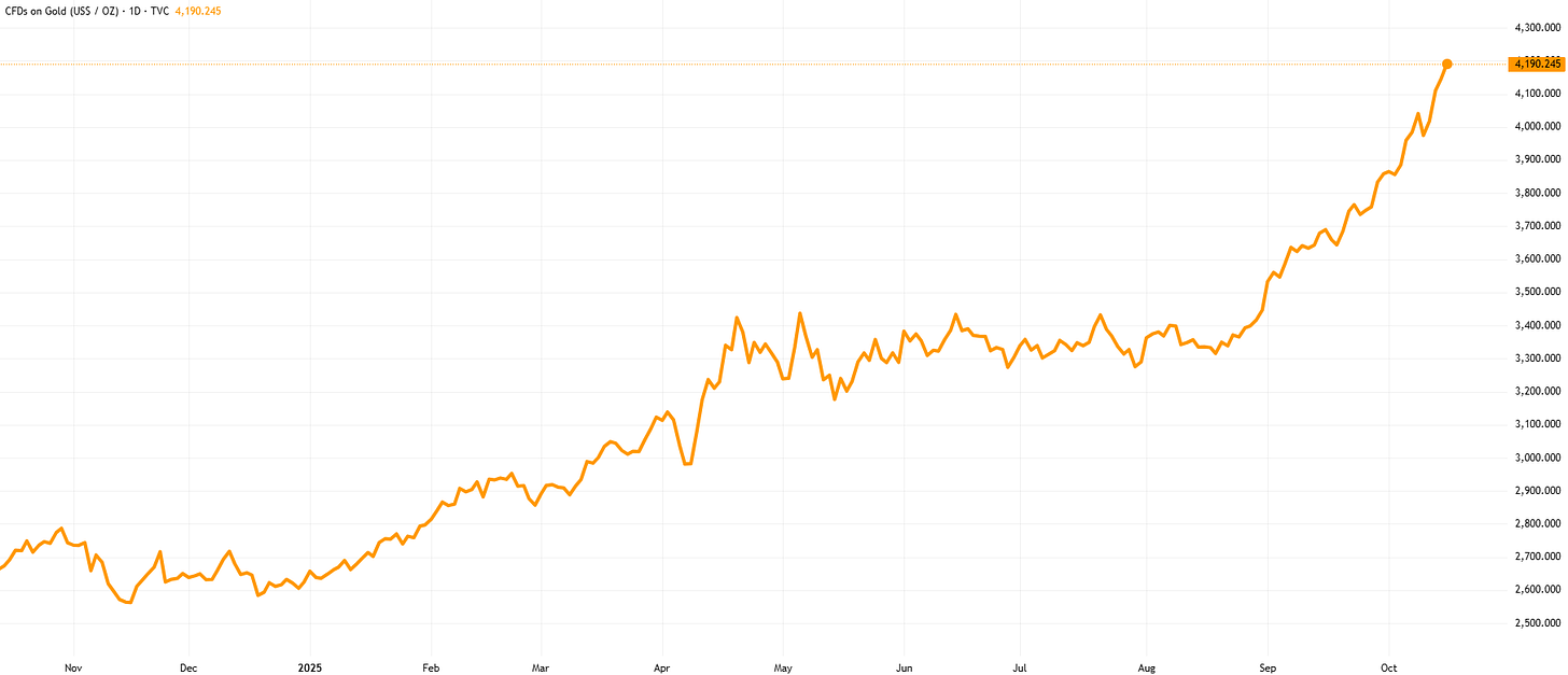 Figure 1: Gold Price, Year over Year as of 10/15/2025